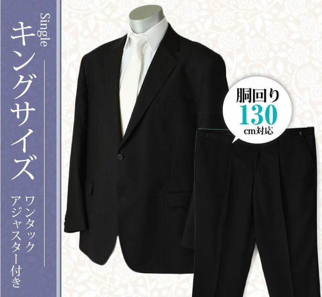 他の画像を見る ウエスト130cmに対応したシングルの礼服・喪服。 【kaj_k_s】 ~6点セット~ シングルタイプの男性用キングサイズのメンズ礼服・喪服(K体) レンタル価格 ¥ 10,300 税込 詳細を見る お気に入りに登録する